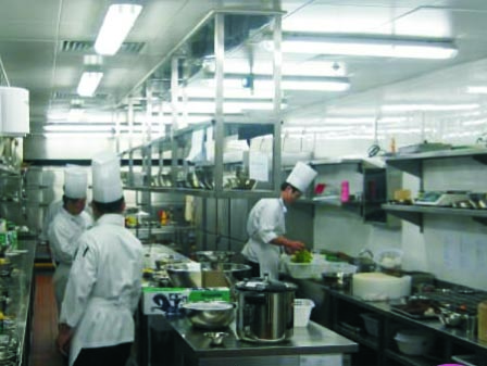 廚房設備尤其是與食物和餐具接觸的廚房設備,要符合環保要求,不得污染食物和餐具,影響用餐者的健康。